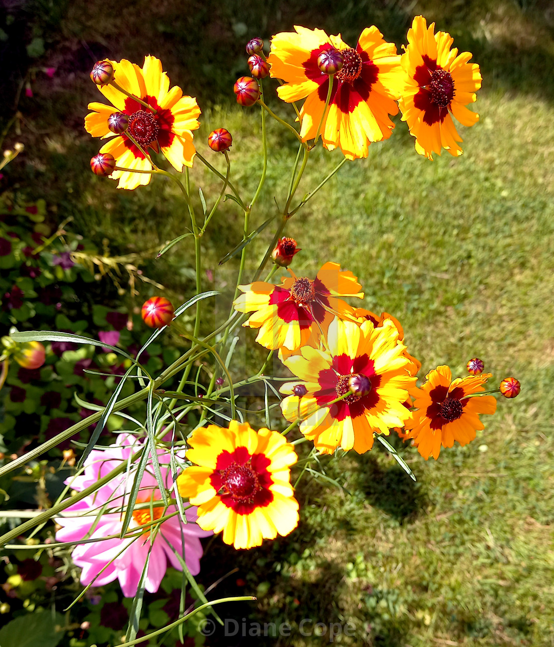 All these flowers belong in a Cottage Garden, where they will self seed from year to year. Poppies, Aquilegia and Lavatera.